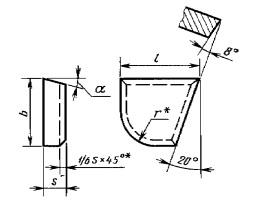 Пластина 67410 ВК8 правая (20х12х7х8гр) (для подрезных, проходных расточных и револьверных резцов)
