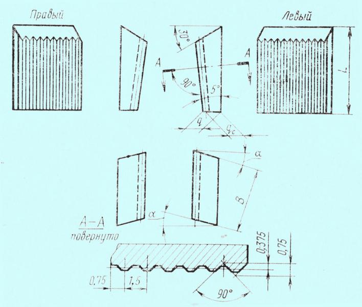 Нож 2026-0061 к трехсторонней фрезе d250-36 (32х30х14) ВК8 рифленый клиновой правый